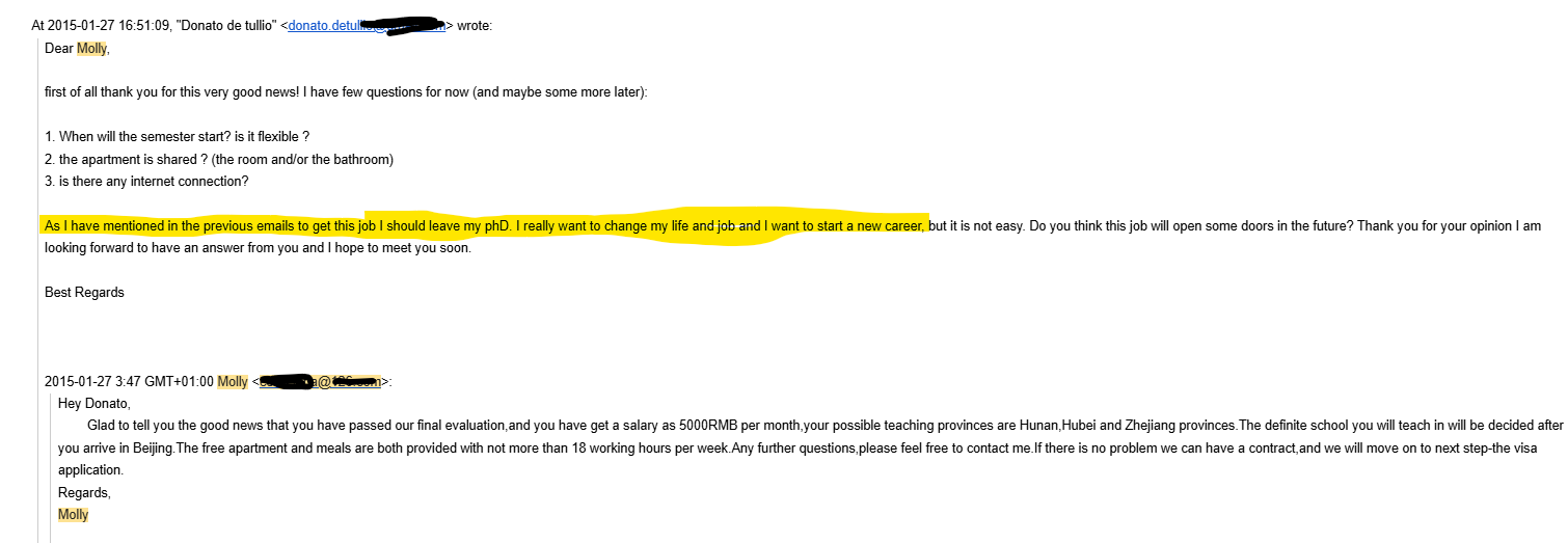 Quel giorno avevo avuto la conferma da Molly che mi avevano accettato per un lavoro come insegnante di inglese. In Cina.